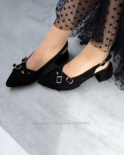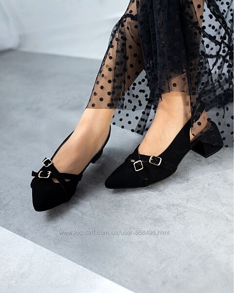 Подробное описание: Замшеві чорні босоніжки з пряжками