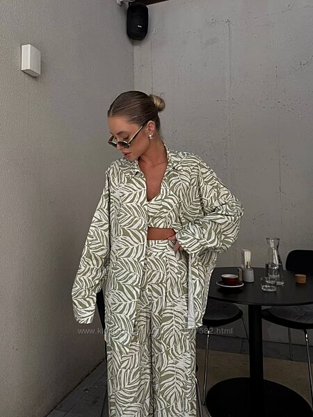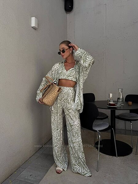 Подробное описание: Жіночий костюм трійка з брюками літній з сорочкою з топом брючний