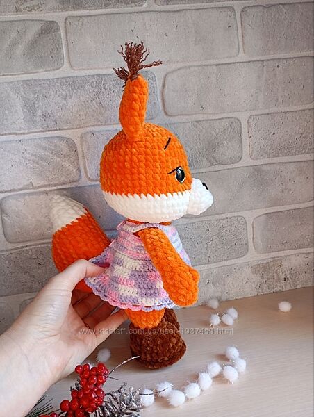 Білка з плюшу. Зріст 30 см. Самостійно стояти/сидіти не вміє. Очі на безпечному кріпленні.На сайті великий вибір моїх іграшок. Дивіться інші об´яви. З радістю відповім на будь-які додаткові запитання.