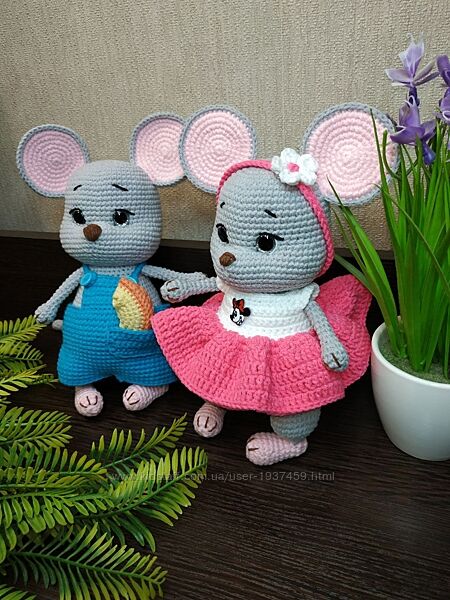 Увага! Ціна вказана за одну іграшку!Мишки хлопчик і дівчинка. Зріст 21-22 см. Очі на безпечному кріпленні. Самостійно стояти не вміють, злегка опираються на хвостики. Одяг знімається.