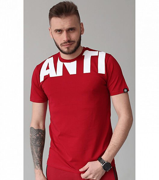 Чоловіча оригінальна футболка призначена для активного проведення часу і повсякденного носіння. Стильна, оригінальна, міцна, зносостійка модель. Футболка прямого крою, рукава короткі, горловина кругла. На лівому рукаві розміщений фірмовий прапорець. Модель зручна в носінні, приємна на дотик і до тіла, не викликає алергічної реакції, швидко сохне. Тканина приємна до тіла, легка в догляді та практична у використанні. Прикрашено виріб оригінальним принтом ANTI по верху передньої частини. При дотриманні рекомендацій з догляду, футболка зберігає свій первозданний вигляд довгий час. Купити чоловічі футболки з принтом можна в різних кольорах і розмірах.Склад тканини: 95% бавовна 5% еластан