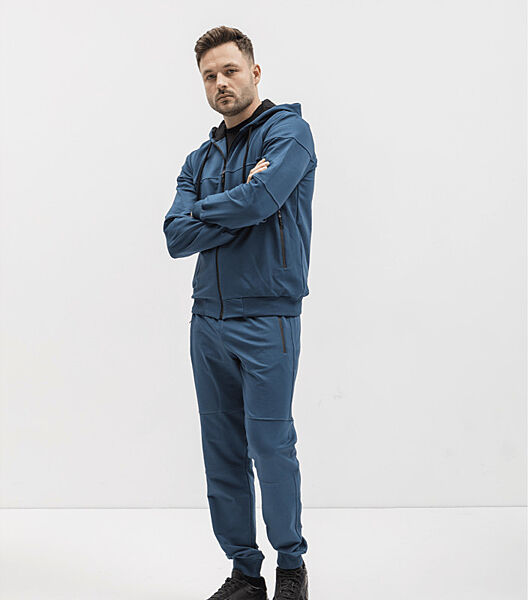 З таким спортивним чоловічим костюмом легкість та комфорт на прогулянках чи під час занять спортом тобі будуть забезпечені. У комплекті спортивні штани йдуть на резинці вгорі та внизу, зі зручними кишенями спереду вгорі.Крім того, вони мають застібки, що додає їм ще більшої функціональності та комфорту. У худі каптур доповнений підкладкою з основного матеріалу, а прямий низ та довгі рукави закінчуються манжетами в тон. Для більшого комфорту у кофті спереду вшита функціональна блискавка по всій довжині. Зручний фасон та лаконічний дизайн роблять цей трикотажний костюм чудовою базовою річчю для чоловічого гардеробу.