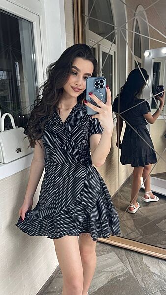Подробное описание: 42-44, 44-46 Кокетлива літня сукня в горошок софт принт