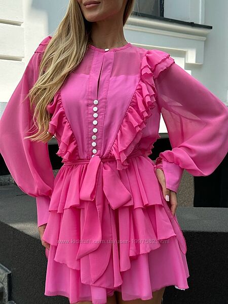 Подробное описание: Жіноча сукня з шифону літня з воланами з довгим рукавом романтична нарядна