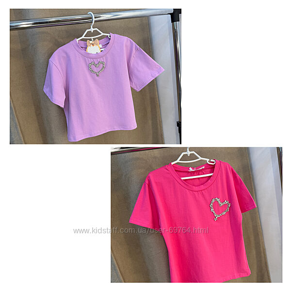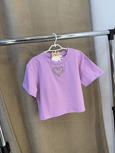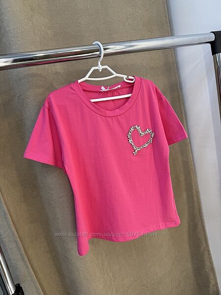 Стильная футболка для девочки с сердечком из камнейИдеально под шорты, юбку и брюки.