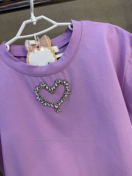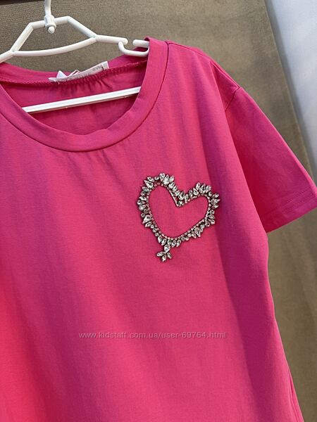 Подробное описание: Стильная футболка для девочки с сердечком из камней