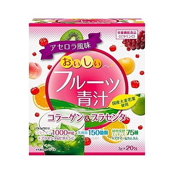 Аодзіру з колагеном, плацентою та молочнокислими бактеріямиі вітаміном С зі смаком фруктів YUWA Fruit Aojiru Collagen & Placenta