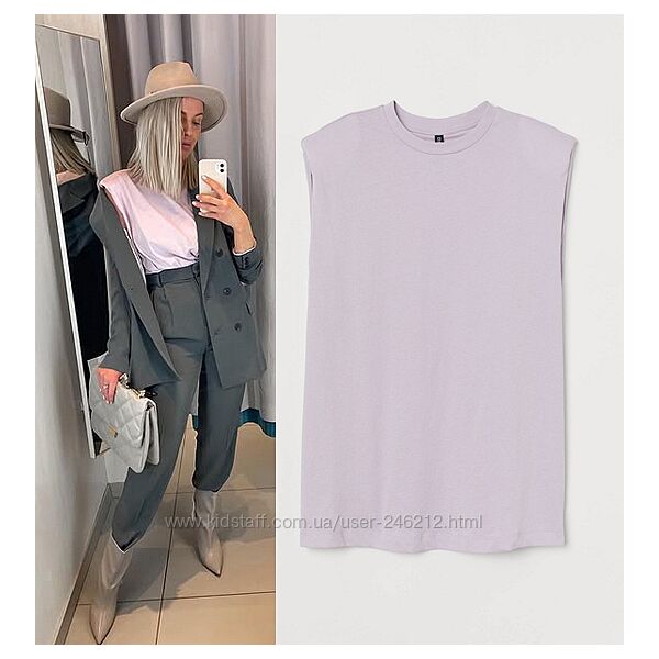 Бузкова футболка H&M 🌸Футболка прямого вільного крою, без рукавів, на підплічниках.