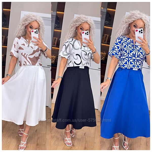 Подробное описание: 42-44, 46-48, 50-52 ніжний костюм спідниця міді та блузка