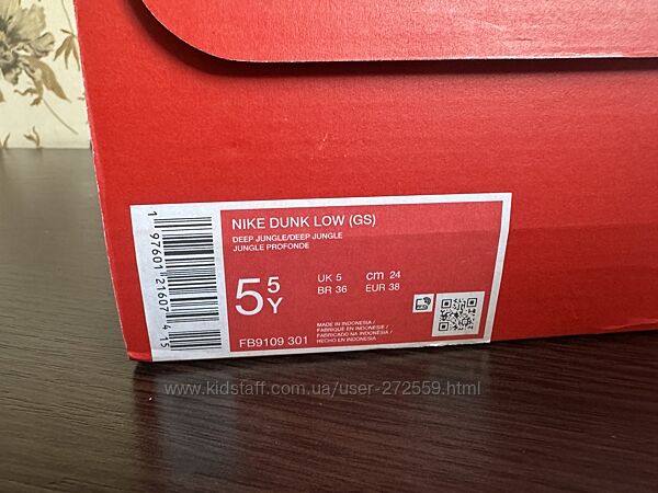 Кросовки Nike Dunk low big kids, размер 5.5Y, наш 37, оригинал, новые