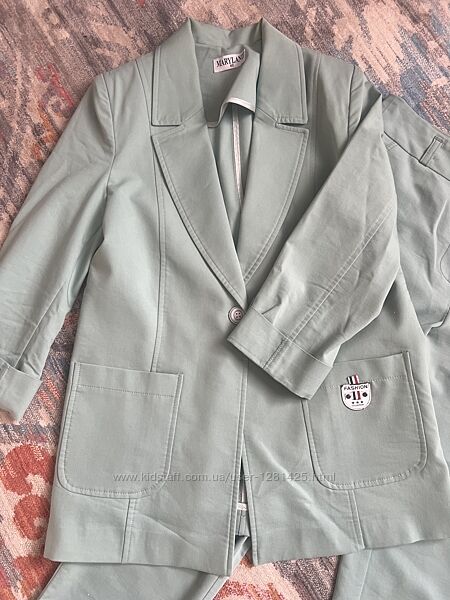Дуже класний стильний літній костюм.Якісна тканина. Гарно сідаю, тягнеться.