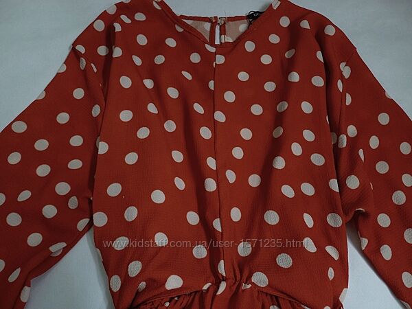 Подробное описание: Сукня теракотового кольору в горох Boohoo.