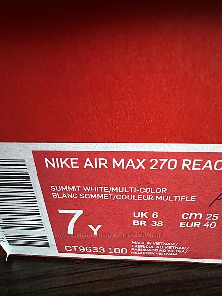 Подробное описание: Кроссовки Nike Air max 270 react, размер 38, как новые, оригинал