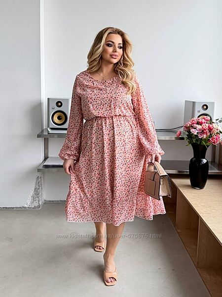 48-50, 52-54, 56-58, 60-62 Повітряна сукня шифон та підкладка під низом