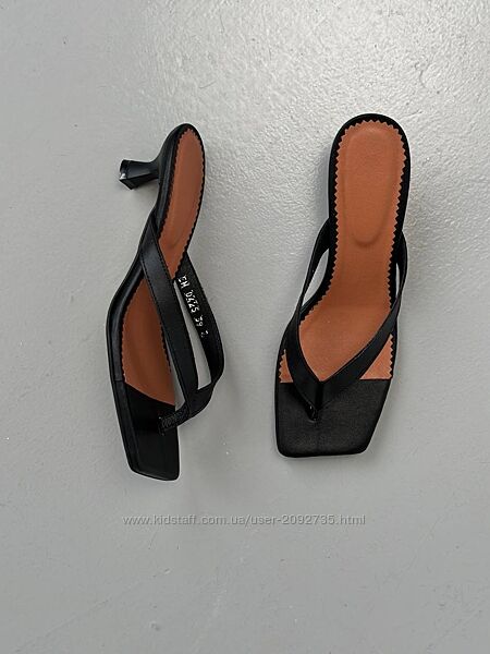 Подробное описание: Шльопанці жіночі шкіряні чорні на підборах Артикул 4535