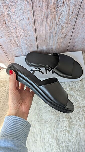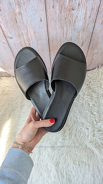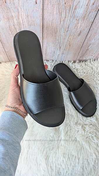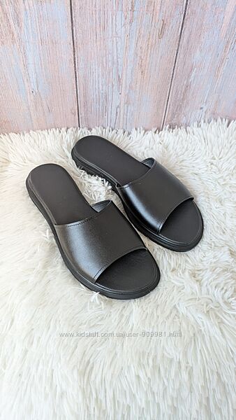 Чорні шкіряні шльопанці жіночі шльопки натуральна шкіра