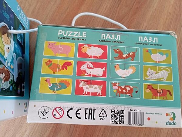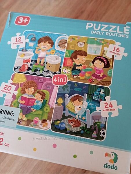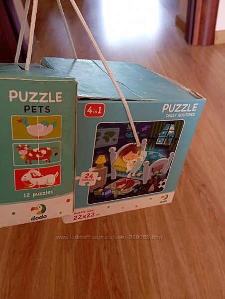Пазли для маленьких 3+ одним лотомУ великій коробці 4 картинки, різного розміру пазлів.