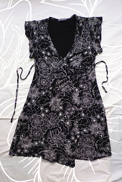 Продам оригінальну літню сукню на запах з квітковим принтом.Розмір на бірці: S\M, довжина: 76 см.