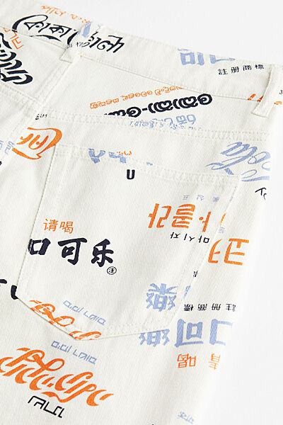 Штани з 5 кишенями із бавовняного твила з принтом по всій поверхні. Вільний крій з високою талією, застібкою на блискавку та гудзик та подовженими прямими штанинами.Заміри: надаємо по запиту