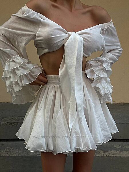 Подробное описание: XS-S, M-L Костюм топ та спідниця-шорти із натуральної дихаючої тканини
