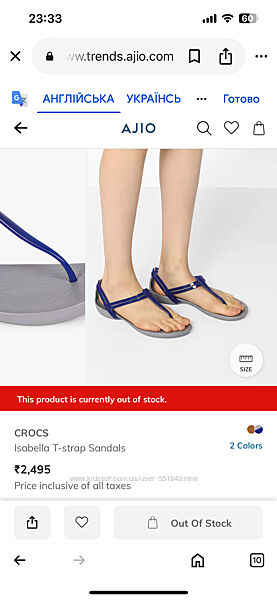 Сандалі crocs isabella t-strap р. w6-23см. оригінал