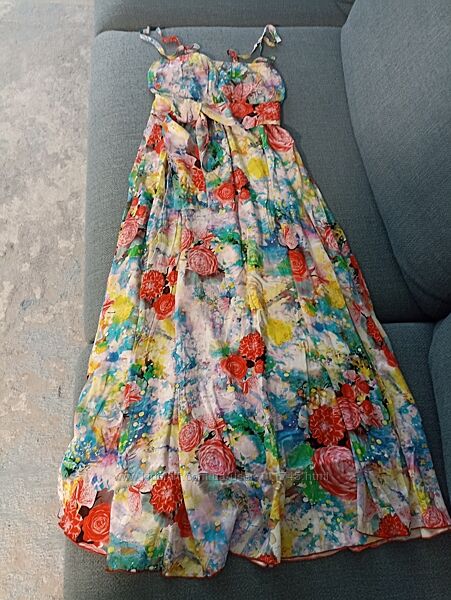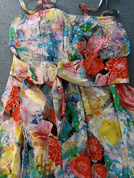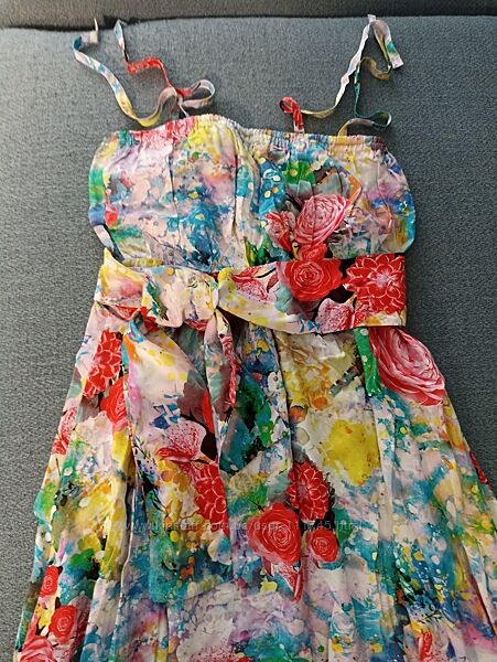 Літній сарафан р.S-M в ідеальному стані. Тканина дуже м´яка та приємна до тіла. Котон та віскоза. Повна довжина 120см, від резиночеи під грудьми 100см, ширина резинки під грудьми в спокійному стані 32см, тягнеться до 48см.Ціна 500 грн.