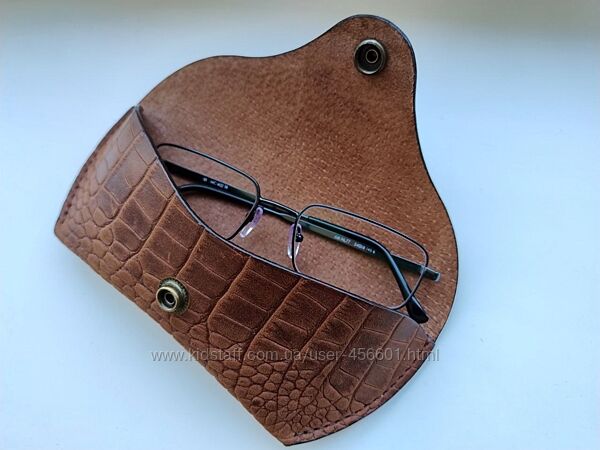 Вашій увазі представляю сучасний стильний аксесуар - чехол/футляр для окулярів. Ручна робота.Виконується футляр з натуральної італійської/турецької шкіри Крейзі Хорс (колір обговорюється окремо) або Buttero (колір коньячний), розмір універсальний 17х7,5-8 - підходить як для звичайних так сонячних окулярів. Виготовляється під замовлення 5-8днів. поністтю РУЧНА РОБОТА!