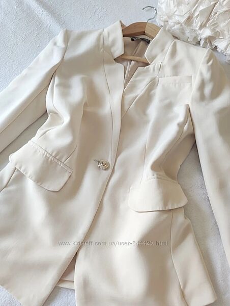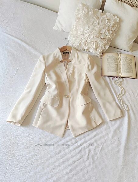 Стильний блейзер піджак молочного кольору Вказано Розмір XS але чудово підходить і на S Заміри: Груди 98-100 см Талія 96 см Довжина 72 см, рукава 60 см, плечі 41 см