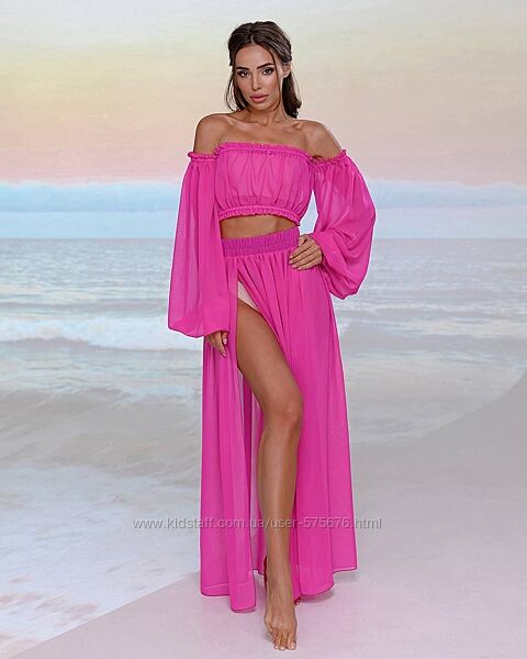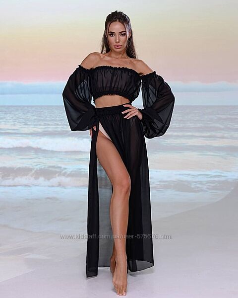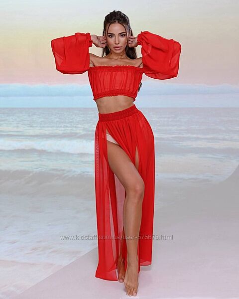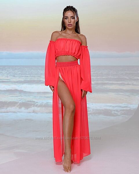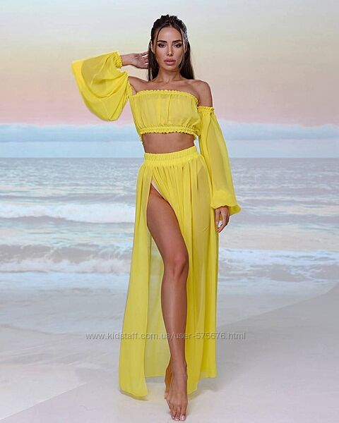 Подробное описание: 42-48 шикарний шифоновий костюм топ та спідниця