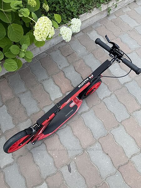 Подробное описание: Самокат Maraton Leader Red з амортизаторами і ручним гальмом