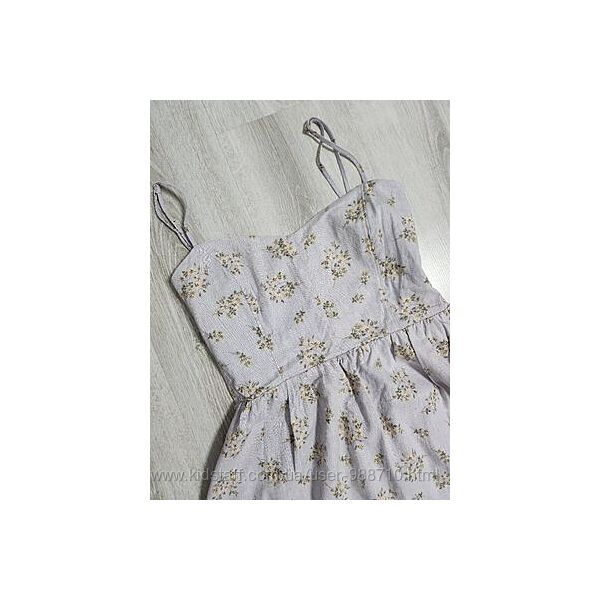 Шикарный сарафан нежнейшего лавандового цвета с акварельным цветочным принтом H&M linen blend55%лён
