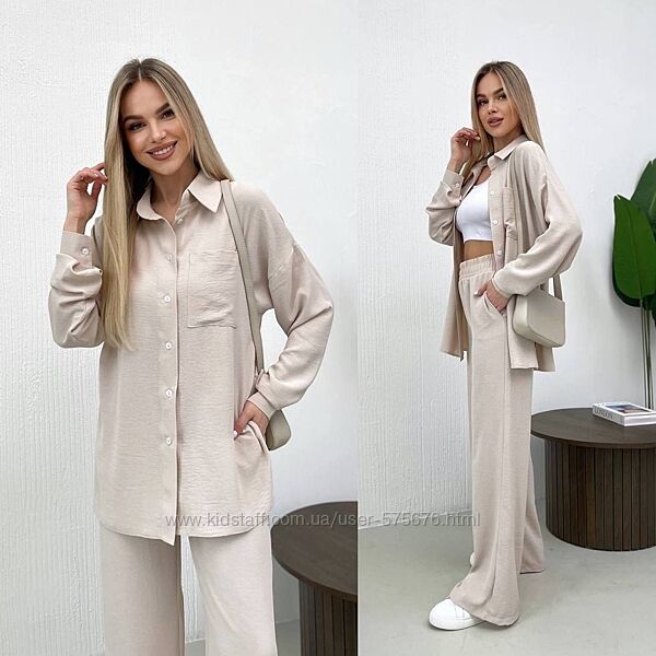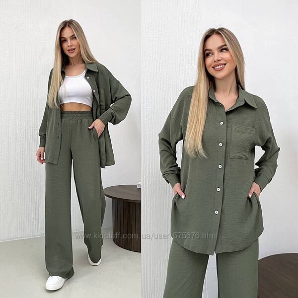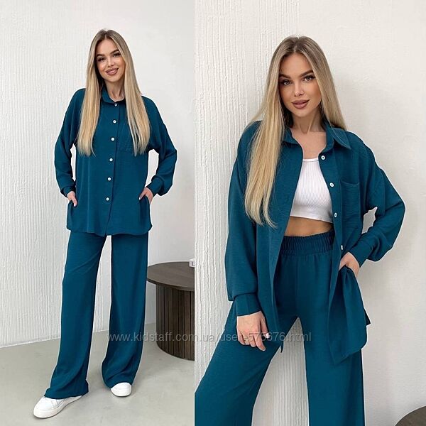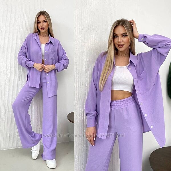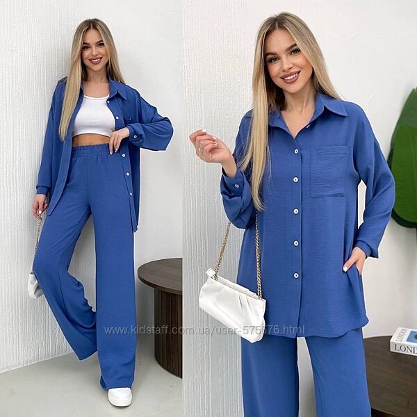 Подробное описание: р.42-44 до 56р. 16 кольорів Костюм креп жатка штани і сорочка