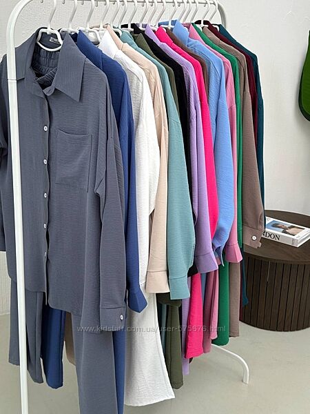 Кольори: сірий, джинсовий, молочний, бежевий, оливковий, хакі, чорний, лавандовий, малиновий, кавовий, блакитний, рожевий, зелений, мокко, бордовий, морська хвиля