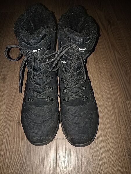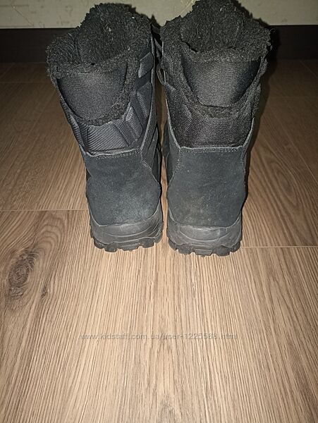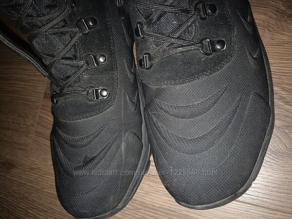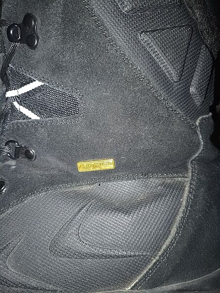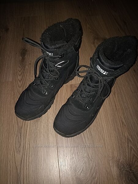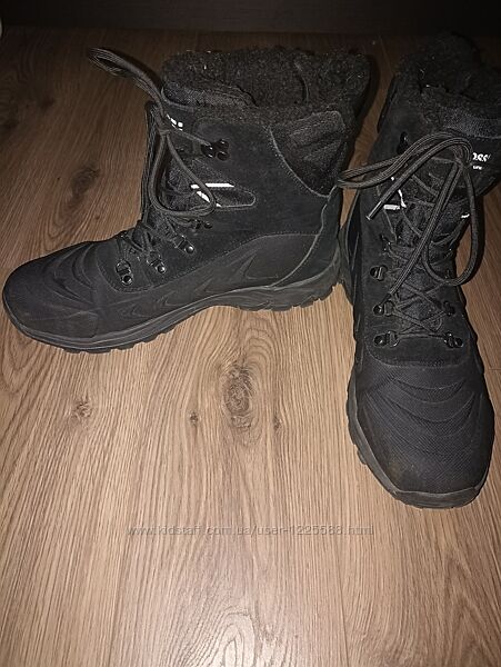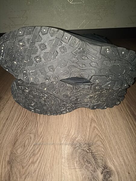 Зимові водонепроникні мембранні черевики. Верх із натуральної замші, утеплена внутрішня частина. Лита верхня частина, захист і підтримка гомілкового суставу, міцний носок і посилена п´ятка. Міцна нековзка лита шипована підошва для спеціалізованого взуття, яке експлуатується в екстремальних умовах, виробник використовує додаткові елементи - металеві шипи. По кризі будете ходити як боженька) Устілка 28,5 см до загину Мінімальні сліди використання, чоловіку трохи не підійшов розмір