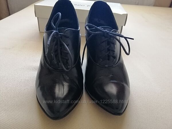 Зручні ботільони з натуральної шкіри, охайно виглядають на нозі. Взувала кілька разів, стан дуже хороший. З нюансів на останньому фото подряпина на підборі. Набійки не змінювалися. Розмір 37, по устілці 24 см, ширина 8,5 Каблук 8 см