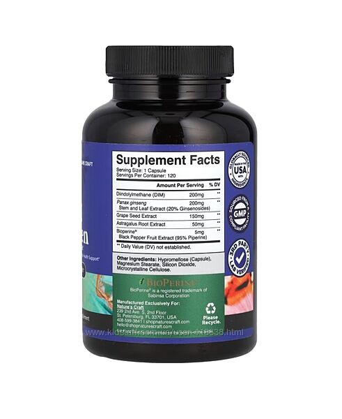 # Nature´s Craft, DIM для мужчин с BioPerine®, 120 капсулОПИСАНИЕ:
