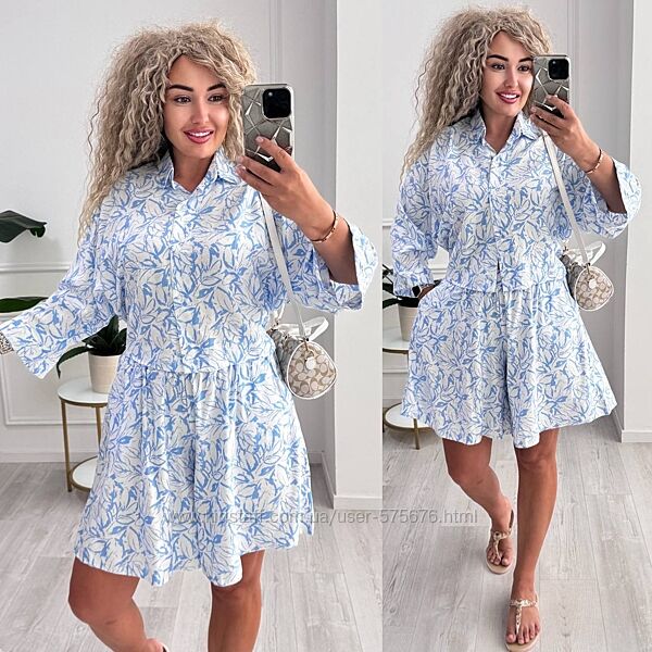 Подробное описание: 42-44, 46-48, 50-52 костюм двійка сорочка та спідниця-шорти льон бохо принт