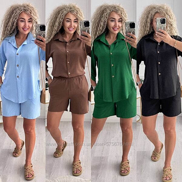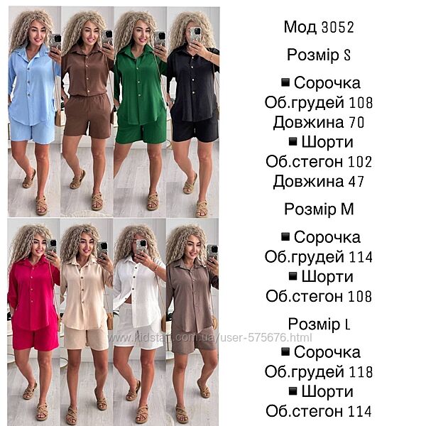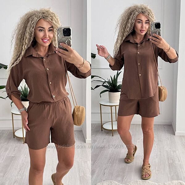 Подробное описание: S, M, L костюм двійка сорочка та шорти американський креп
