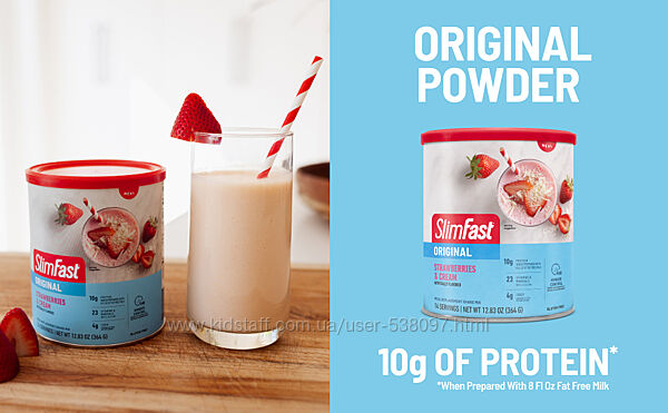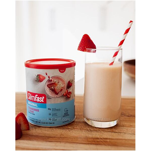 🌞 🍀 SlimFast Original коктейльная смесь - заменитель пищи клубника со сливками, коктейль для похудения 🌞 🍀364 г.