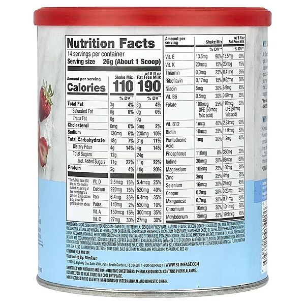 сахара, забеливатель из подсолнечника (подсолнечное масло, пахта, динатрия фосфат, натуральный ароматизатор, диоксид кремния), целлюлозный гель, концентрат молочного белка, мальтодекстрин, натуральные и искусственные ароматизаторы, ксантановая камедь, смесь камеди (каррагинан, декстроза, гуаровая камедь, соль, лецитин, ацесульфам калия, аспартам, краситель красный 40, смесь витаминов и минералов: карбонат кальция, дикалийфосфат, дикальций фосфат, оксид магния, dl альфа токоферилацетат (витамин), аскорбат натрия (витамин С), ортофосфат железа, никотинамид (витамин B3), йодид калия, оксид цинка, сульфат марганца, витамин A (пальмитат), фитонадион (витамин k1) молибдат натрия, селенит натрия, глюконат меди, холекальциферол (витамин D3), d-пантотенат кальция, биотин, хлорид хрома, пиридоксина гидрохлорид (витамин B6), мононитрат тиамина (витамин B1), фолиевая кислота, рибофлавин (витамин B2), цианокобаламин (витамин B12).