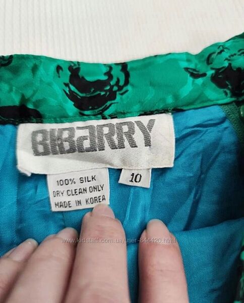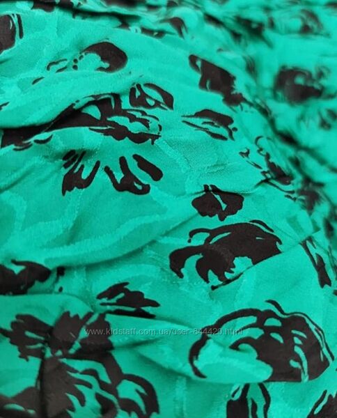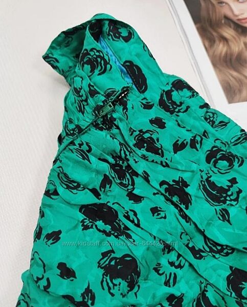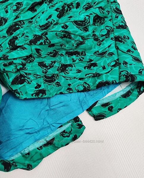 Спідниця із натурального шовку міді зелена в принт на підкладці