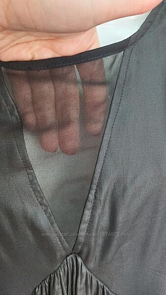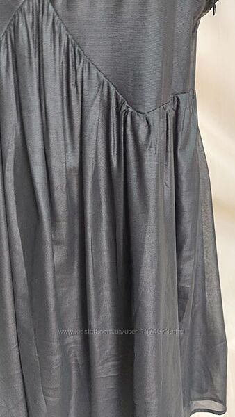 Чорна туніка від німецького бренду Сlockhouse. На підкладці.Дуже класно виглядає. Верхня тканина з напиленням, на грудях і плечах шифонові вставки. Збоку блискавка. Розмір вказано М. Мірки: груди 46,5 см, довжина 84 cм