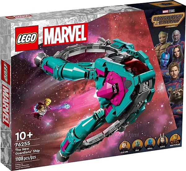 Конструктор LEGO 76255 Marvel Новий корабель Вартових Галактики, том 3, з мініфігурками Богомола, Дракса та Зоряного Лорда, набір космічного корабля супергерояДіти віком від 10 років можуть полетіти з екіпажем «Вартових Галактики. Том 3» з цим набором супергероїв LEGO Marvel, який включає космічний корабель, що збирається, та 5 мініфігурок.