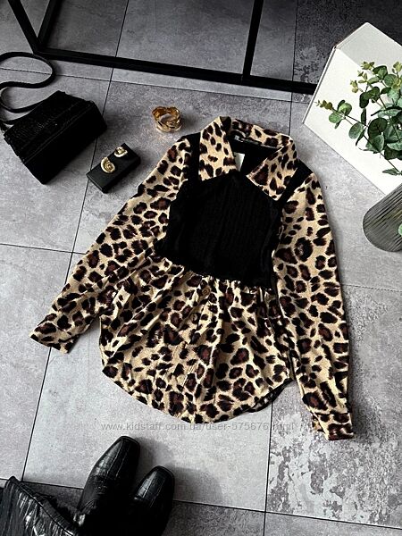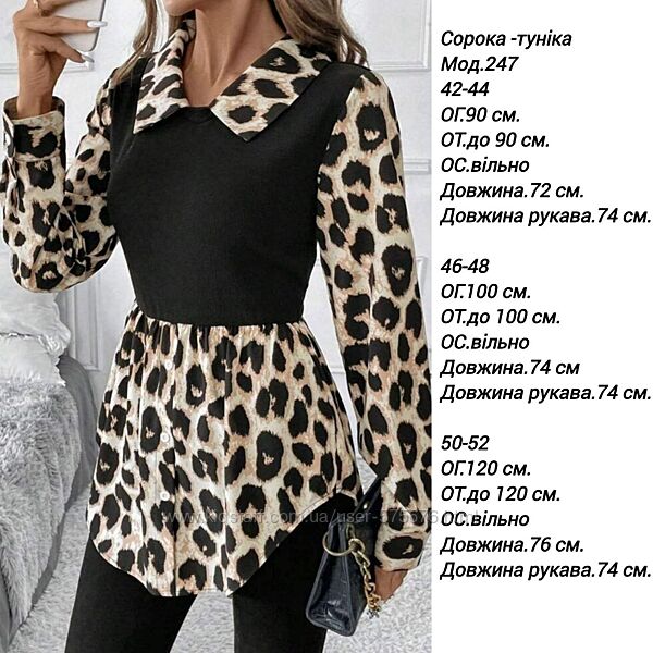 Подробное описание: 42-44, 46-48, 50-52 Сорочка туніка софт принт лео та ангора мустанг рубчик