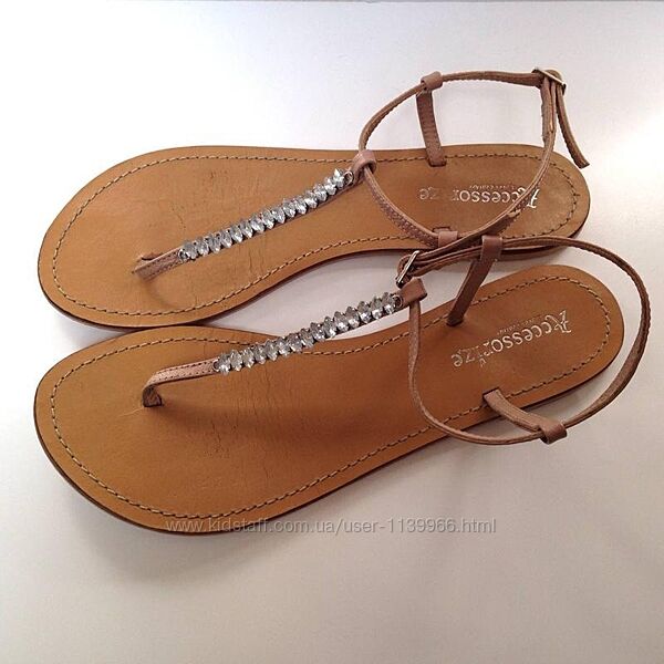 Кожаные босоножки Шкіряні босоніжки accessoriseБосоніжки Agcessorize кожані, нюдового кольору з камінням, всі камінці в наявності, стан гарний, верх та устилка кожані, довжина устилки 26,5-27 сантиметрів, стильні, виглядають дорого.