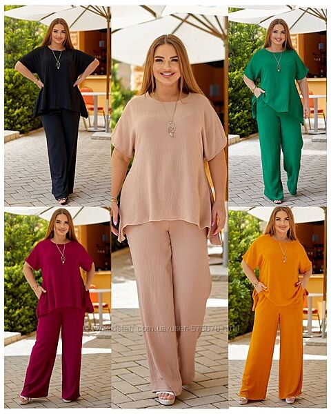 Подробное описание: р.50 до 64р. Стильний костюм американський креп-льон жатка