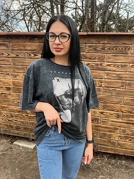 Неймовірно красива та стильна футболка з доберманом. Класна турецька фабрика. Розмір стандарт. Підійде від 42 до 52 розмірів. У 2-х кольорах:рожевому та темно-сірому. Рекомендую. 100% бавовна.Довжина: 73 см.
