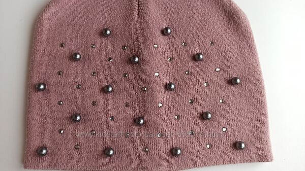 Очень красивый цвет - пыльная роза. Украшена бусинами стального цвета и камушками. Все на месте)