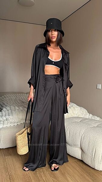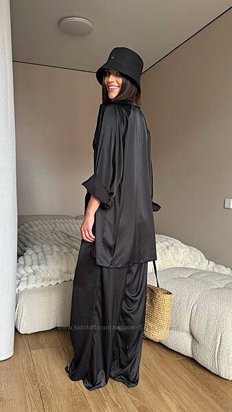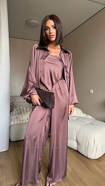 Подробное описание: 42-44, 46-48 Шовковий костюм трійка в стилі oversize штани, сорочка, хустин