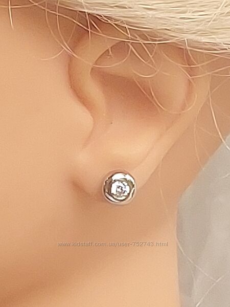 Золото белое. Украина. Вес 2.61гр. Диаметр 7.3мм. Вставка цирконий.Предложения Premium магазинов